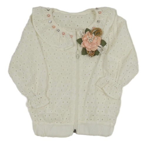 Bílá perforovaná propínací mikina s 3D květem a perlami