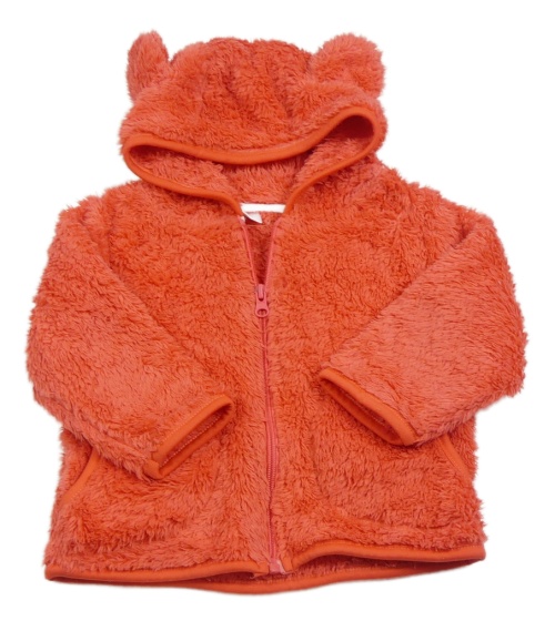 Korálová chlupatá propínací mikina s kapucí