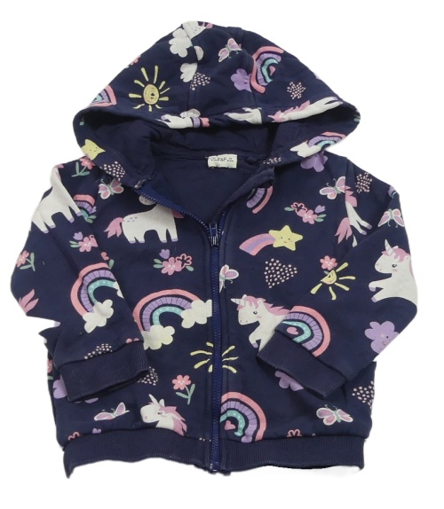 Tmavomodrá propínací mikina s jednorožci, duhami a kapucí F&F