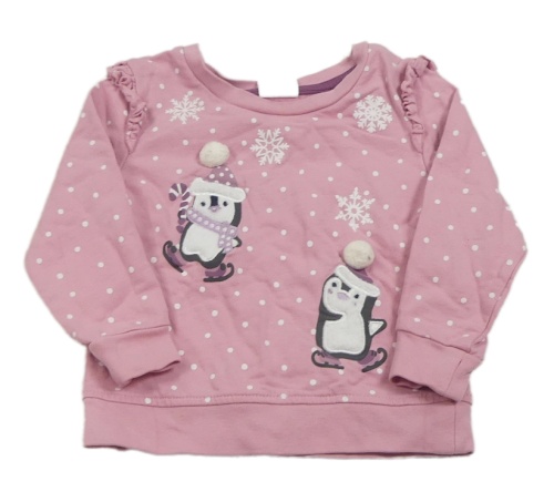 Růžová puntíkatá mikina s tučňáky a vločkami Pocopiano