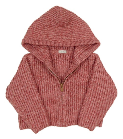 Červený melírovaný žebrovaný propínací svetr s kapucí Next