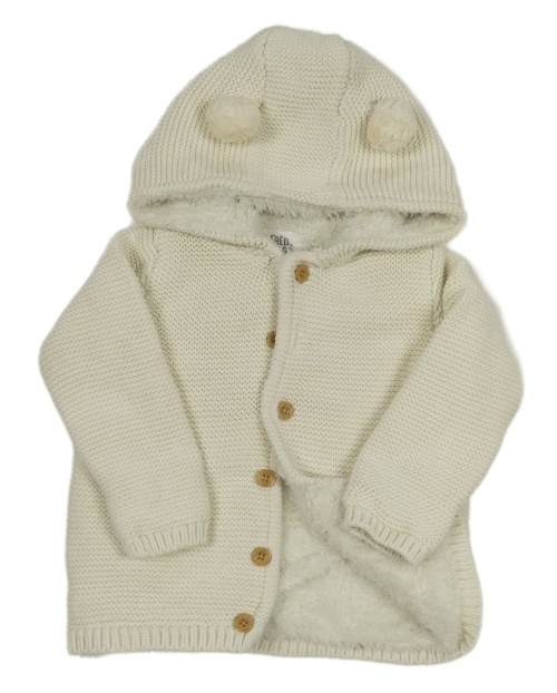 Smetanový propínací zateplený svetr s kapucí Nutmeg
