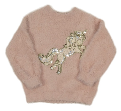 Růžový chlupatý svetr s jednorožcem z flitrů F&F