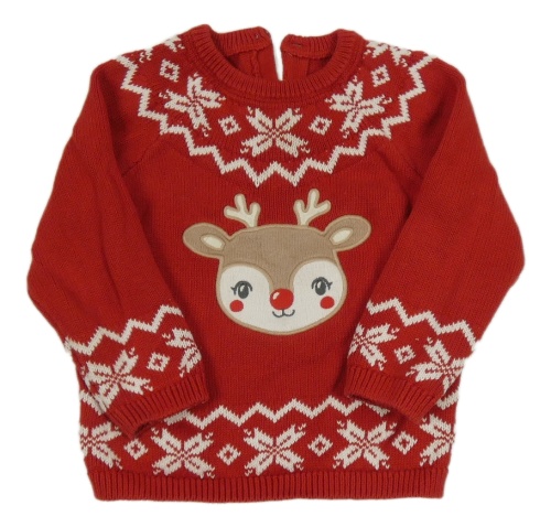 Červeno-bílý svetr s norským vzorem a sobem C&A