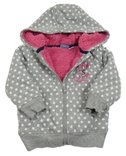 Šedá propínací zateplená mikina s puntíky a kapucí Lupilu