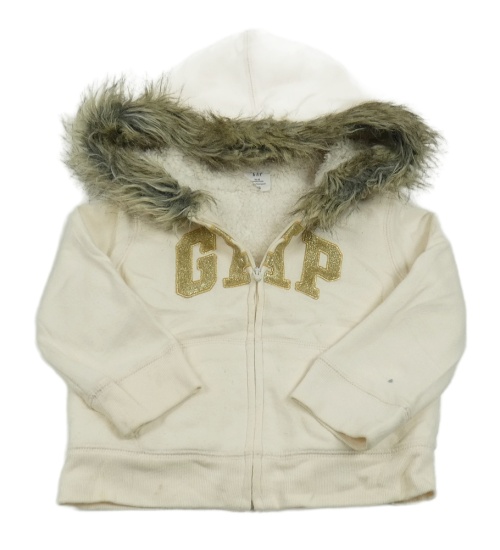 Smetanová propínací mikina s kožešinou na kapuci GAP