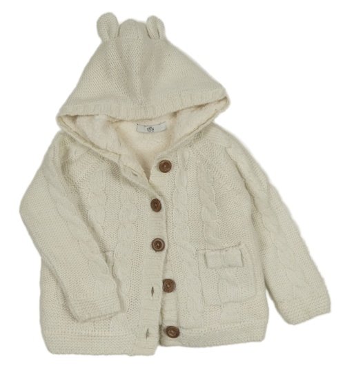 Světlebéžový vlněný zateplený propínací svetr s kapucí M&S