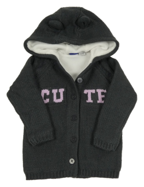 Tmavošedý podšitý propínací svetr s nápisem a kapucí Lupilu