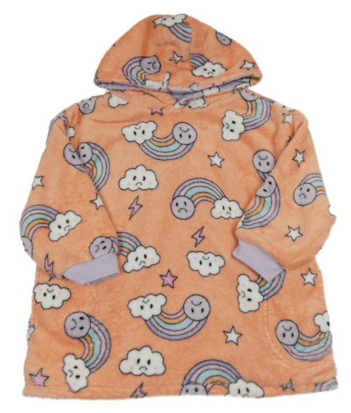Oranžová plyšová domácí oversize oboustranná mikina s duhami