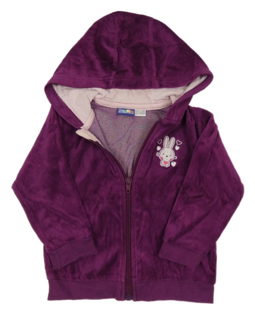 Borůvková sametová propínací mikina se zajíčkem a kapucí lupilu