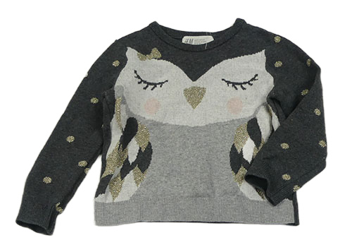 Tmavošedo-šedý melírovaný svetr se sovičkou a puntíky H&M