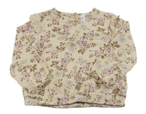 Světlebéžová mikina s kytičkami a volánky a madeirou