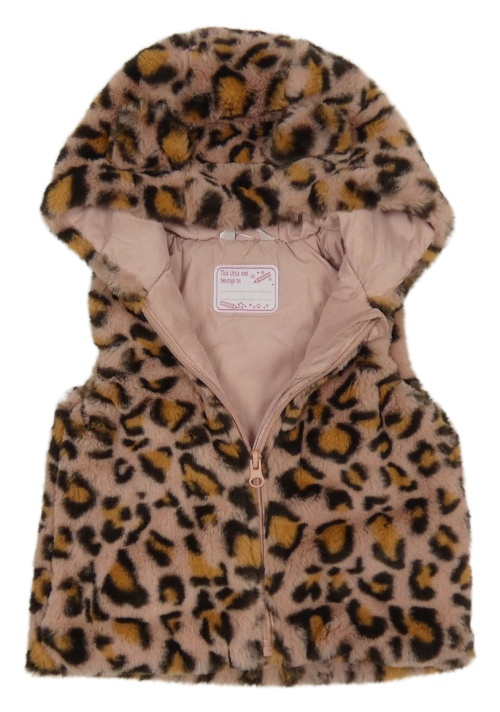 Růžová kožešinová zateplená vesta s leopardím vzorem a kapucí M&Co.