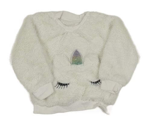Bílá kožešinová mikina s jednorožcem Nutmeg