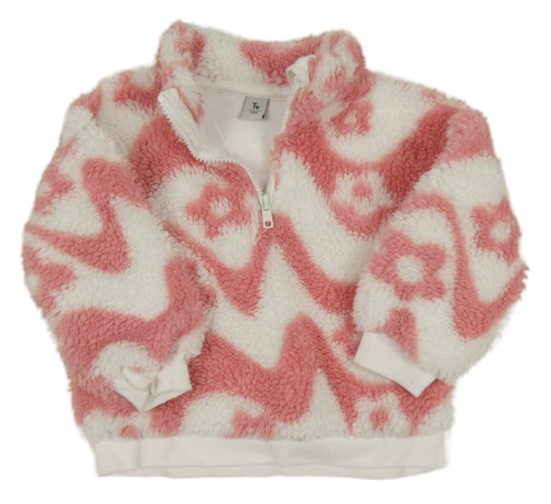 Bílo-růžová huňatá vzorovaná mikina Tu