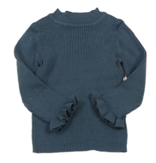 Tmavomodrošedý žebrovaný úpletový rolák s volánky Nutmeg