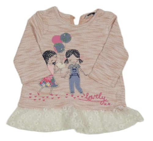 Světlerůžový melírovaný svetr s holčičkami a bílým krajkovým volánkem s květy George