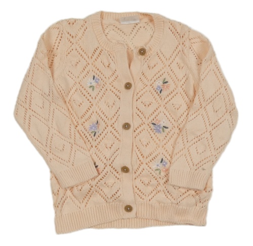 Světlerůžový perforovaný propínací svetr s kytičkami
