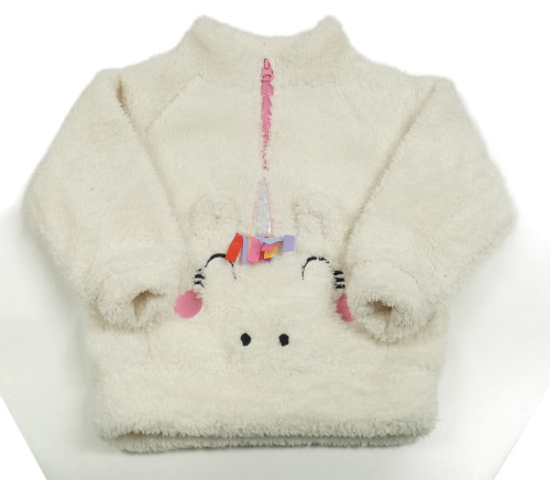 Smetanová chlupatá třpytivá mikina s jednorožcem Tu
