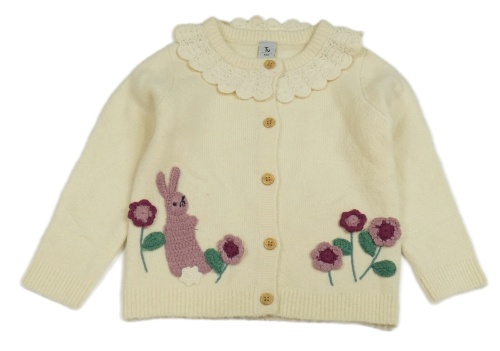 Vanilkový propínací svetr s králíkem a květy Tu