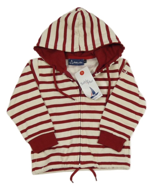 Smetanovo-bordó pruhovaná propínací mikina s kapucí Sable et Mer