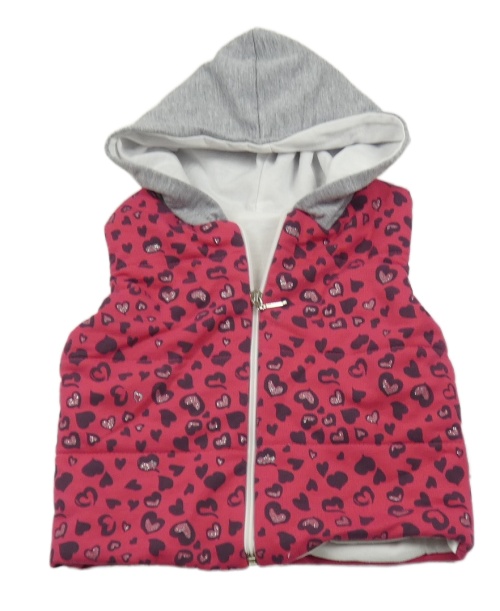 Rubínovo-šedá tepláková zateplená vesta se srdíčky