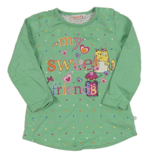 Zelená tepláková tunika s kočkou a puntíky Liegelind