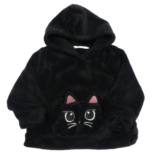 Černá chlupatá mikina s kočkou a kapucí H&M