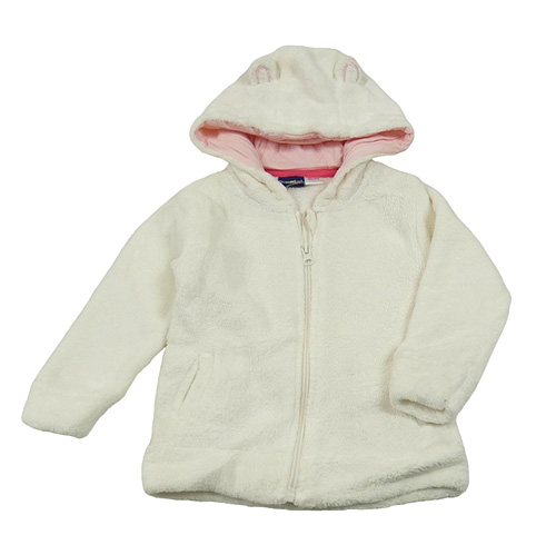 Smetanová chlupatá propínací mikina s kapucí s oušky Lupilu