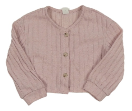 Světlerůžový melírovaný žebrovaný úpletový propínací crop svetr SHEIN