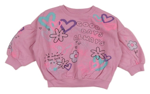 Růžová oversize mikina s nápisy a květy a srdíčky Matalan