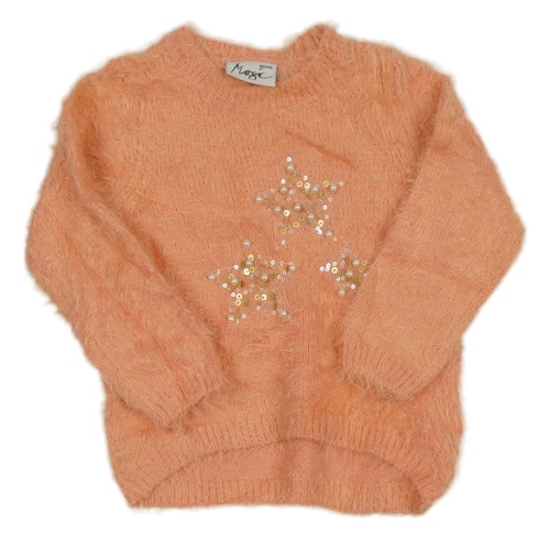 Broskvový chlupatý svetr s hvězdami z flitrů a perel