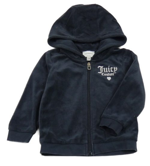 Tmavomodrá sametová propínací mikina s logem a kapucí Juicy Couture