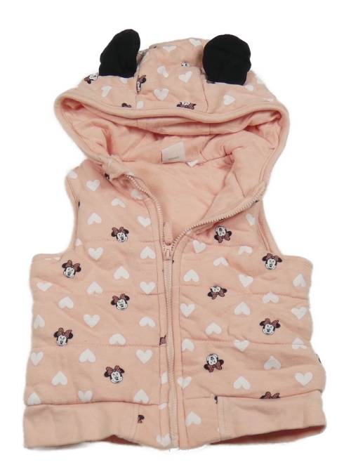 Růžová zateplená tepláková vesta s Minnie a srdíčky a kapucí Disney