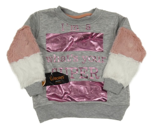 Nové - šedá melírovaná mikina s nápisy a metalickým potiskem a kožešinou