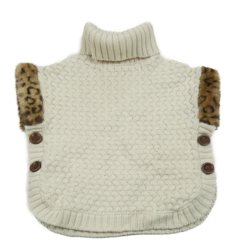 Bílá vzorované svetrové pončo s hnědou kožešinou a rolákem ASPEN KIDS