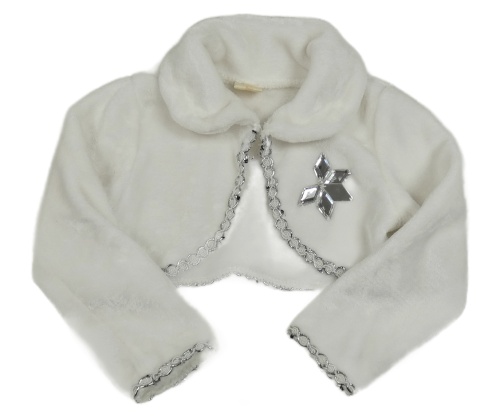 Bílé chlupaté bolerko s límečkem a ozdobou