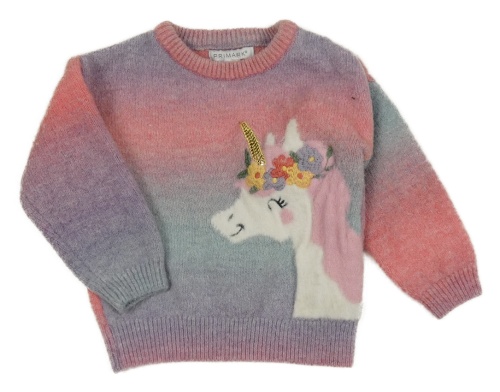 Růžovo-světlemodro-modrofialový vlněný svetr s jednorožcem s flitry PRIMARK