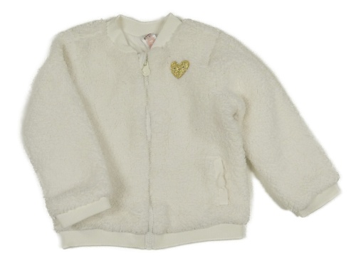 Bílá huňatá podšitá propínací mikina se srdíčkem C&A