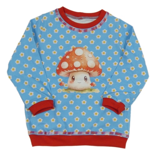 Modro-červená květovaná mikina s houbou