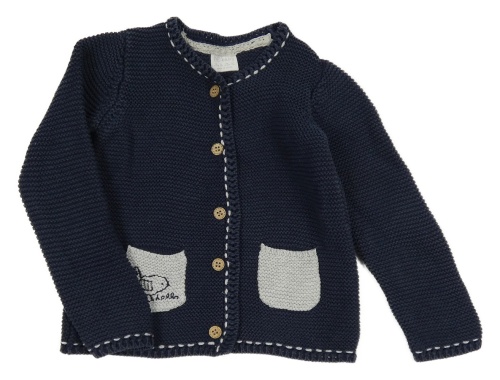 Tmavomodrý propínací svetr s kapsami s ptáčkem F&F