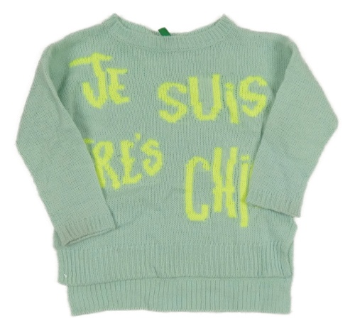 Světlezelený svetr s nápisem Benetton