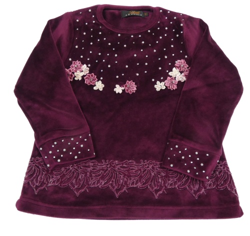 Vínové sametové mikinotriko s perličkami a kytičkami