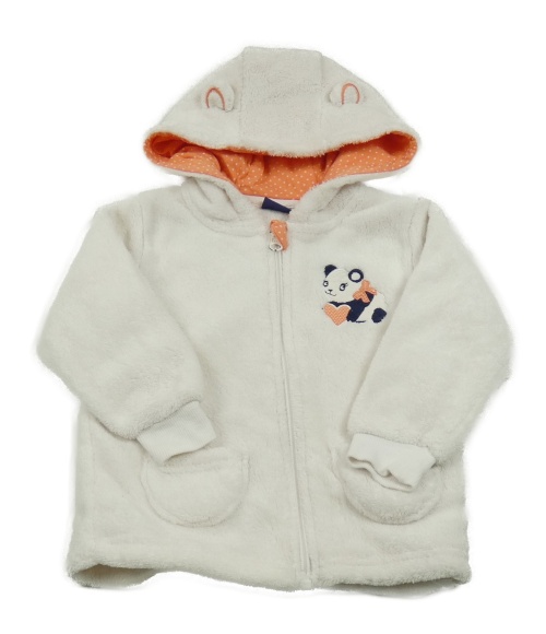 Smetanová chlupatá propínací mikina s pandou a kapucí Lupilu