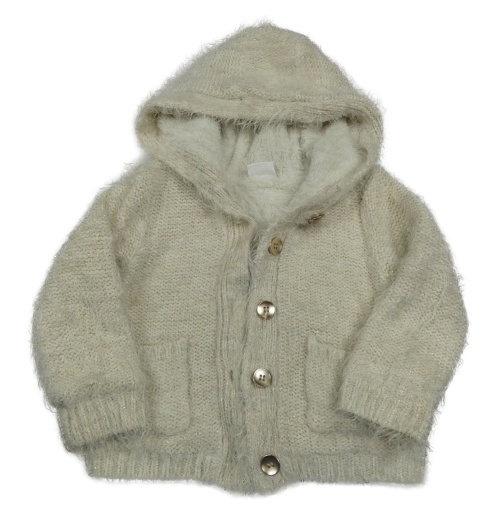 Krémový třrpytivý chlupatý zateplený propínací svetr s kapucí F&F