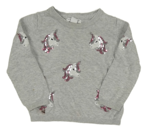 Šedý svetr s jednorožci z flitrů Primark