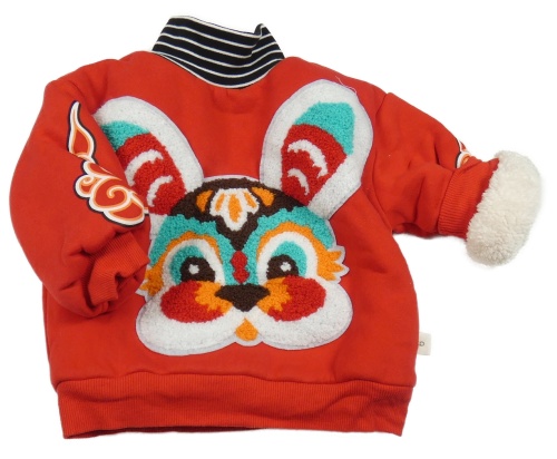 Červená zateplená mikina se zajíčkem a rolákem