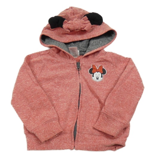 Jahodová melírovaná propínací mikina s Minnie a kapucí Disney
