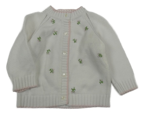 Bílý propínací svetr s výšivkami květin