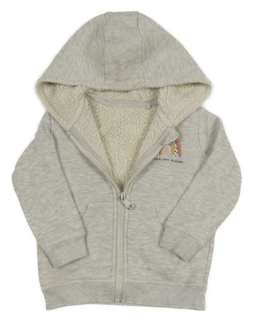 Světlešedá melírovaná propínací zateplená mikina s duhou a kapucí George